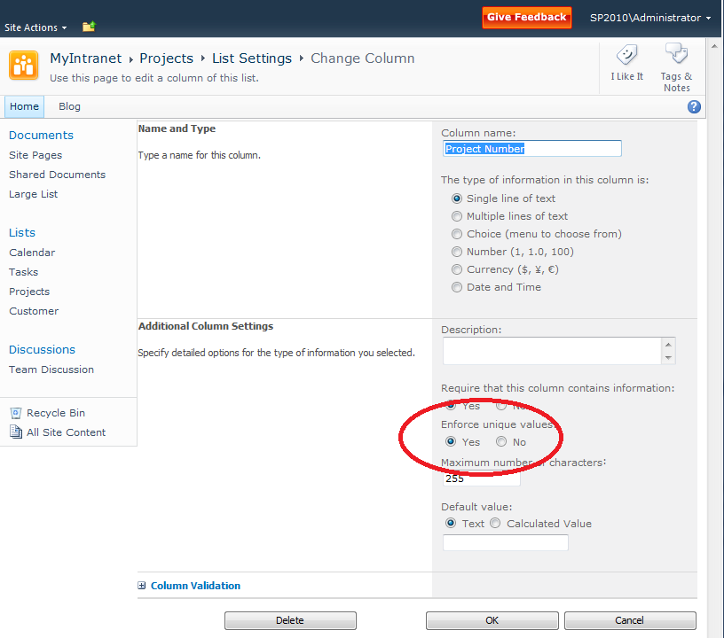 Neu können in SharePoint-Listen eindeutige Felder verwendet werden, womit sich sicherstellen lässt, dass der Eintrag eines Feldes nur ein einziges Mal vorkommt (Auftragsnummer, E-Mailadresse etc.). Unique Columns müssen zwingend indexiert werden. Bereits existierende Felder, lassen sich auch nachträglich als Unique Column festlegen, unter der Voraussetzung natürlich, dass die darin gespeicherten Daten entsprechend eindeutig sind.